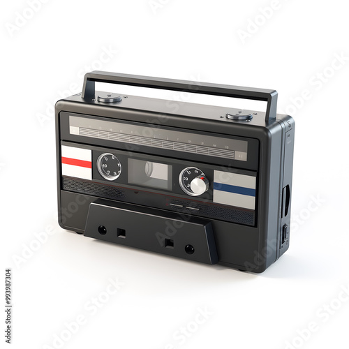 © wannasak, Obraz premium Retro audio cassette tape isolated on white background. 3d illustration