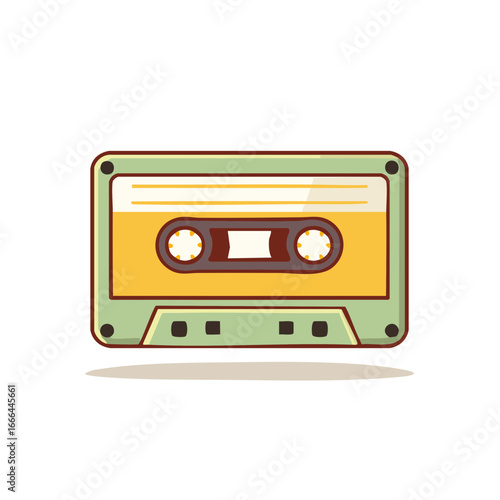 © FryArt, Fototapeta premium Retro Audio Cassette Tape Yellow and Green Colored 1980s Style Isolated
