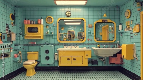 © tydeline, Fototapeta premium Retro bathroom interior design