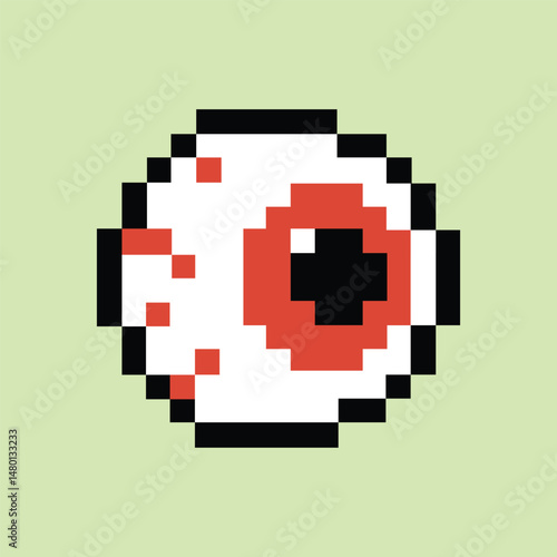 Fototapeta premium Retro 8-bit eyeball icon on pastel lime pixel background