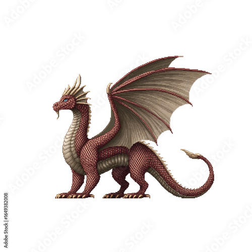 © Kyryl, Obraz premium Retro 8bit pixel fantasy dragon with classic video game graphics for nostalgic digital art lovers
