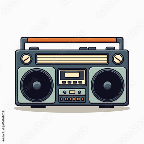 Fototapeta premium Retro Boombox Cartoon Illustration with Speakers and Orange Handle for Music and Entertainment