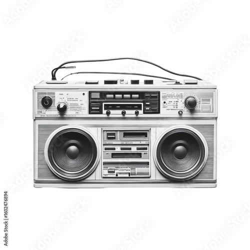 © Rizki, Fototapeta premium Retro boombox, grayscale, front view