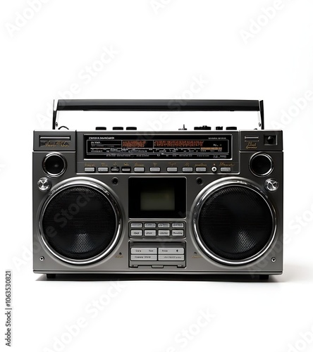 Fototapeta premium Retro boombox radio cassette recorder isolated on white background