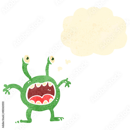 Naklejka premium retro cartoon alien with thought bubble