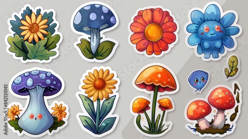 Naklejka premium Retro Cartoon Flower Character Sticker Pack: Groovy Funky Comic Daisy Flower...