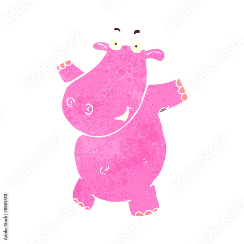 © lineartestpilot, Naklejka premium retro cartoon pink hippo