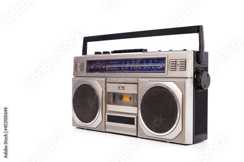 © Pituk, Obraz premium Retro cassette radio isolated on white background.