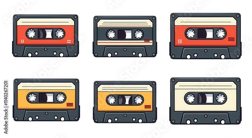 Fototapeta premium Retro Cassette Tape Collection Illustration Set Featuring Classic Music Designs