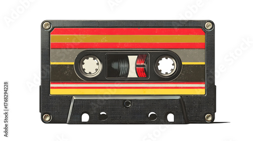 Obraz premium Retro cassette tape design with black shell and multicolor stripes