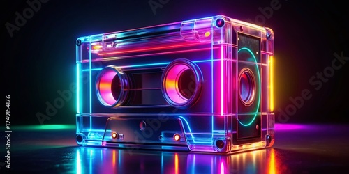 © prapatsorn, Fototapeta premium Retro Cassette Tape Neon Lights Black Background Stock Photo