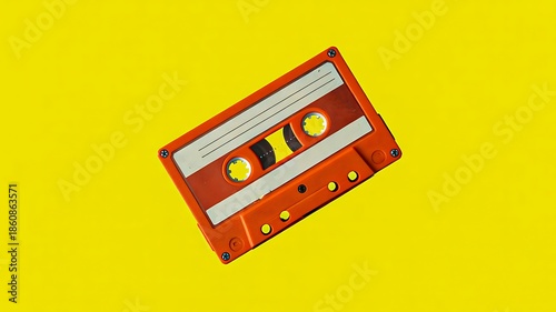 © sunny, Obraz premium Retro cassette tape on yellow background representing vintage music