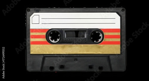 © png stock, Obraz premium Retro cassette tape with colorful stripes and blank label