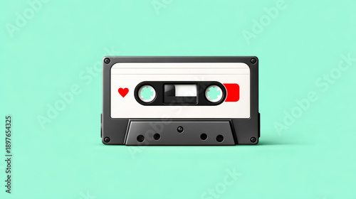 Fototapeta premium Retro cassette tape with heart design on turquoise background for music lovers