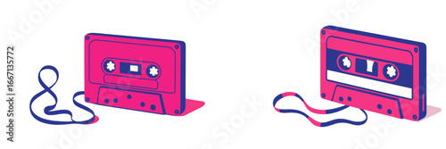 Obraz premium Retro cassette tape with unwound magnetic tape, Minimalist flat