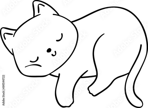© Natsicha, Obraz premium retro cat sleeping doodle outline