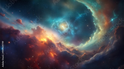 © BIZTECHART, Obraz premium retro celestial cosmic nebula dimensions background