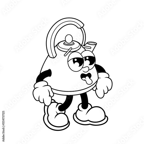 © ydhckll, Obraz premium Retro character design of tired kettle outline