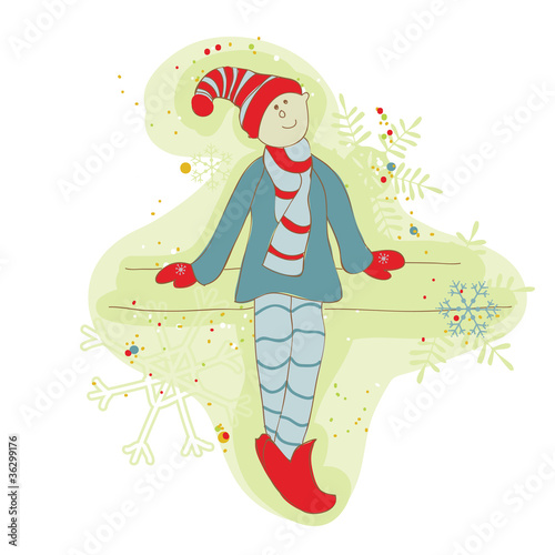 © wooster, Naklejka premium Retro Christmas Elf Card - for scrapbook, design, invitation, gr