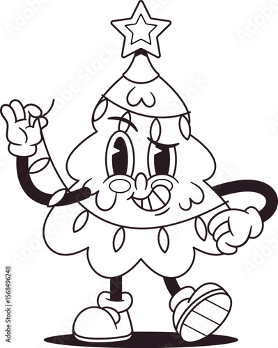 © Pavlo Syvak, Fototapeta premium Retro Christmas tree wearing garlands
