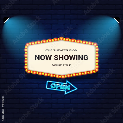 © Mahendra, Obraz premium Retro Cinema with Sparking Blue Color and Blue Neon