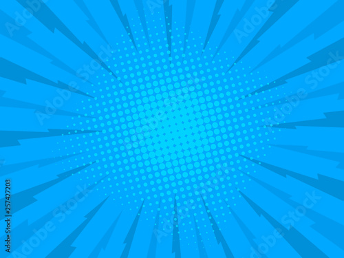 © L-TOP, Obraz premium Retro comic rays blue background. Vector illustration in pop art retro style