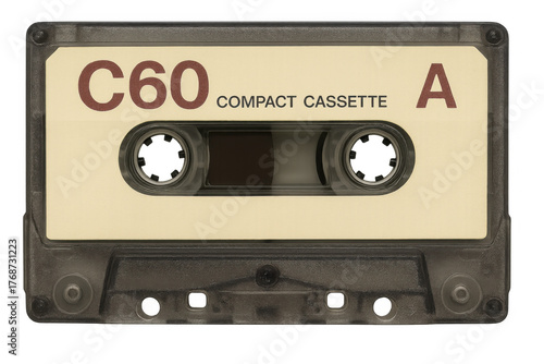 © Krtola , Obraz premium Retro compact cassette c60, side a, for audio recording and playback. Outdated music technology on transparent background