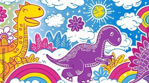 © jinzhen, Obraz premium Retro cute graffiti dinosaur illustration poster background