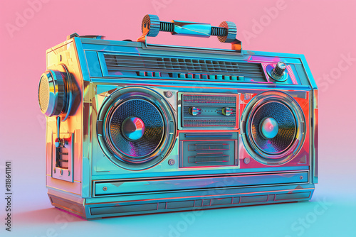 Fototapeta premium Retro 3D Boombox graphic with neon colors.