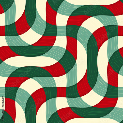 © Zebra Finch, Obraz premium Retro 3D green red yellow overlapping waves with texture