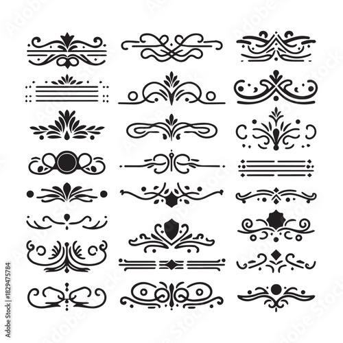 Naklejka premium “Retro Decorative Flourish Vector Pack – Calligraphic Frame Elements”
