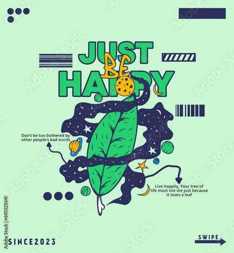 © AKSNA, Obraz premium Retro design "just be happy" for tshirt, clothes, and poster