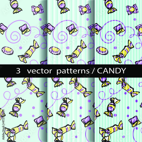Fototapeta premium 3 Retro different vector seamless patterns (tiles). Infinite texture for...