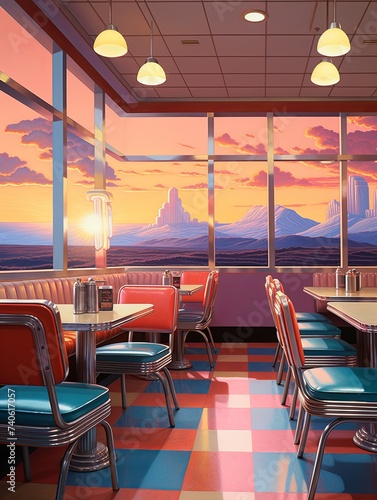 Fototapeta premium Retro Diner Americana: Nostalgic Future Landscape Prints