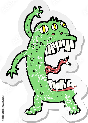 Obraz premium retro distressed sticker of a cartoon crazy monster