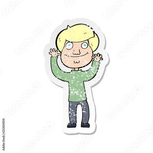 Obraz premium retro distressed sticker of a cartoon happy boy