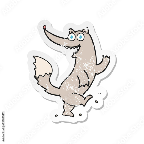 Fototapeta premium retro distressed sticker of a cartoon happy wolf dancing