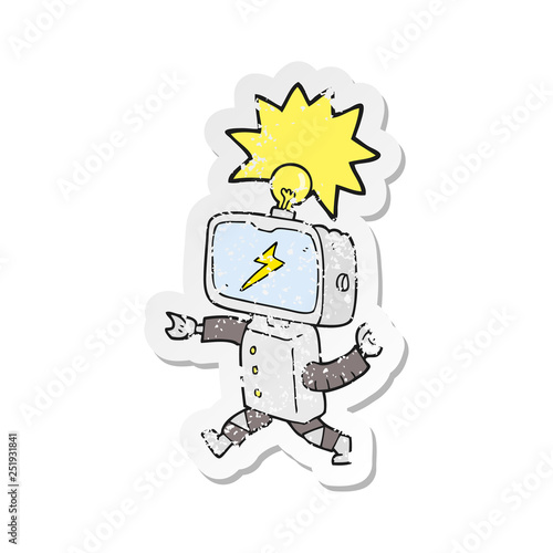 © lineartestpilot, Obraz premium retro distressed sticker of a cartoon little robot