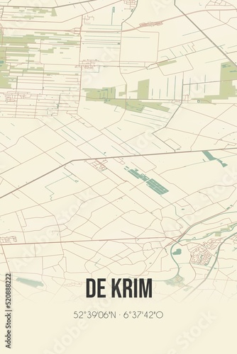 © Rezona, Fototapeta premium Retro Dutch city map of De Krim located in Overijssel. Vintage street map.