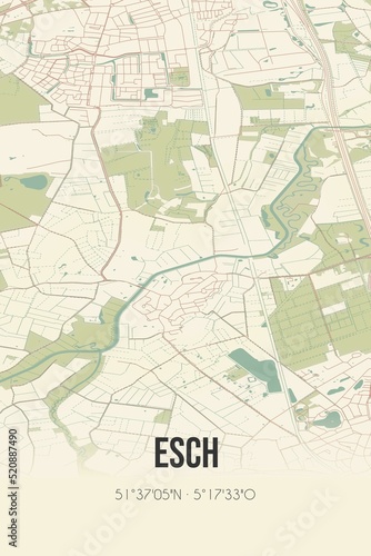 © Rezona, Fototapeta premium Retro Dutch city map of Esch located in Noord-Brabant. Vintage street map.