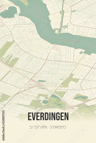 © Rezona, Obraz premium Retro Dutch city map of Everdingen located in Utrecht. Vintage street map.