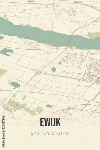 © Rezona, Obraz premium Retro Dutch city map of Ewijk located in Gelderland. Vintage street map.