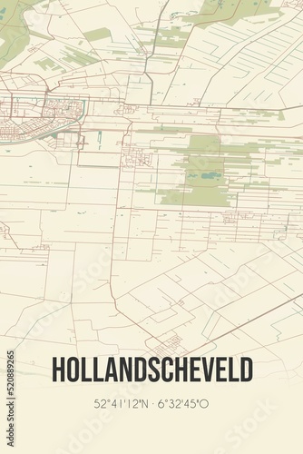 © Rezona, Obraz premium Retro Dutch city map of Hollandscheveld located in Drenthe. Vintage street map.