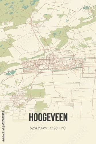 © Rezona, Obraz premium Retro Dutch city map of Hoogeveen located in Drenthe. Vintage street map.