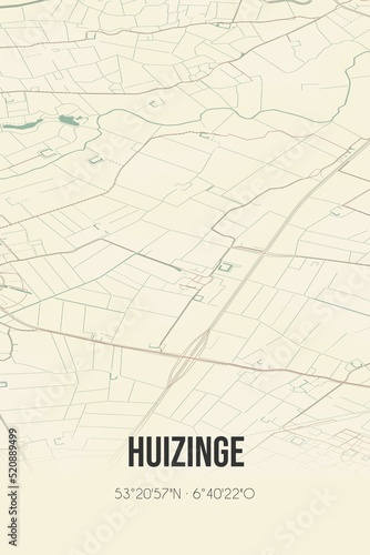 © Rezona, Fototapeta premium Retro Dutch city map of Huizinge located in Groningen. Vintage street map.