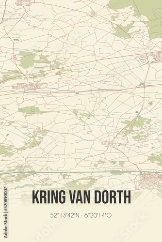 Fototapeta premium Retro Dutch city map of Kring van Dorth located in Gelderland. Vintage street map.