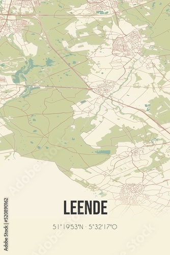 Obraz premium Retro Dutch city map of Leende located in Noord-Brabant. Vintage street map.