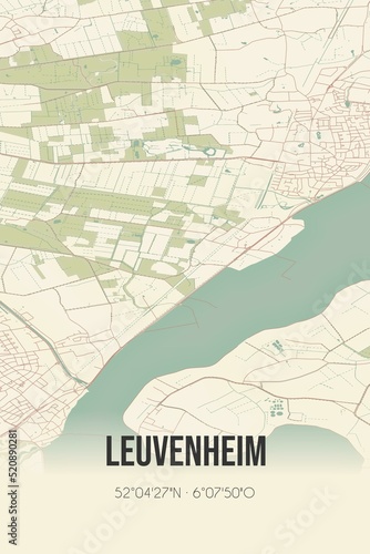 © Rezona, Obraz premium Retro Dutch city map of Leuvenheim located in Gelderland. Vintage street map.