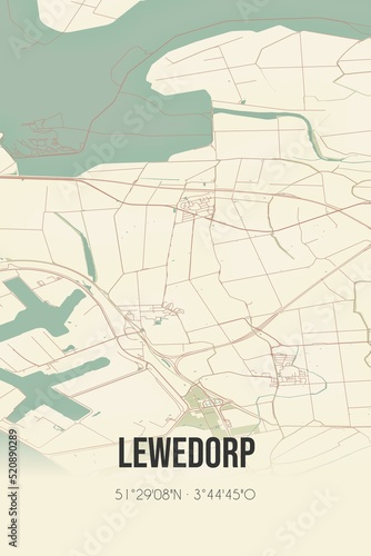 © Rezona, Obraz premium Retro Dutch city map of Lewedorp located in Zeeland. Vintage street map.