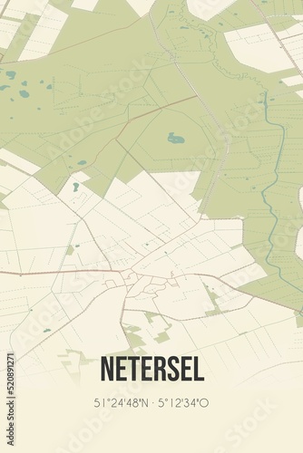 © Rezona, Obraz premium Retro Dutch city map of Netersel located in Noord-Brabant. Vintage street map.